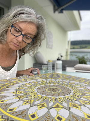 Meine Psychohygiene besteht aus Mandala malen. Im Jahre 2007 habe ich beim Pendeln im Zug begonnen, Mandalas zu entwerfen und mit ganz feinen 0,4 mm Stabilostiften auszumalen. Seither habe ich nicht mehr mit dem Malen aufgehört, das Malbuch begleitet mit auf allen Reisen, im Urlaub und manchmal sogar bei der Arbeit.