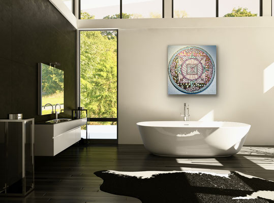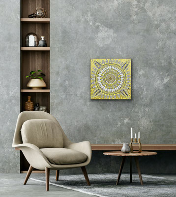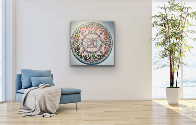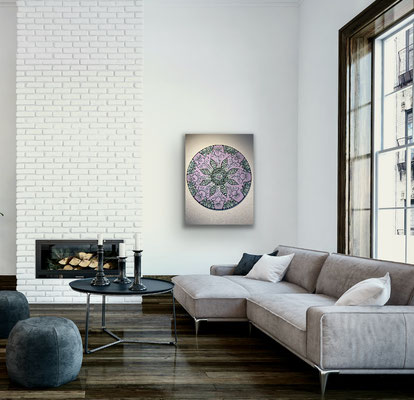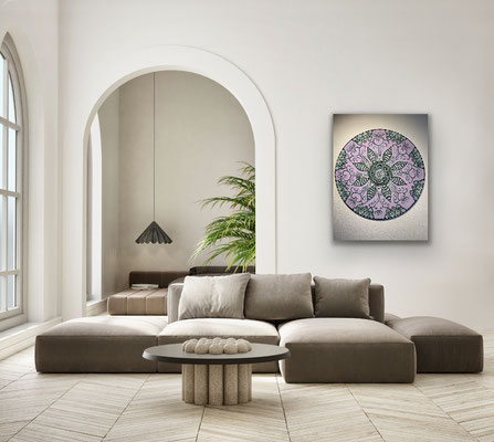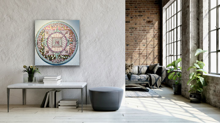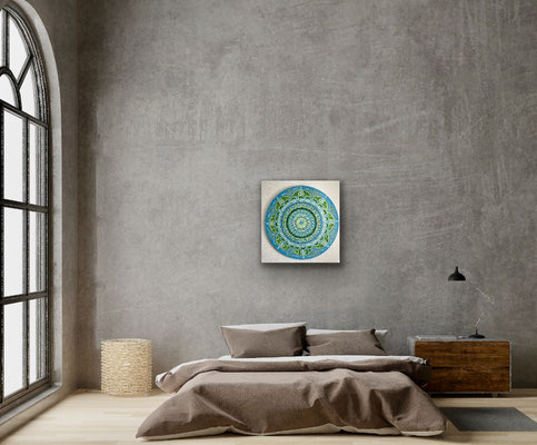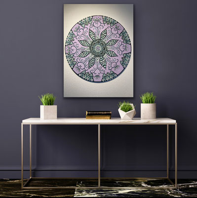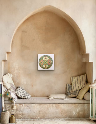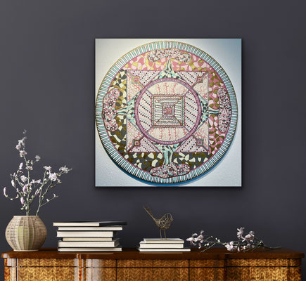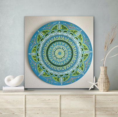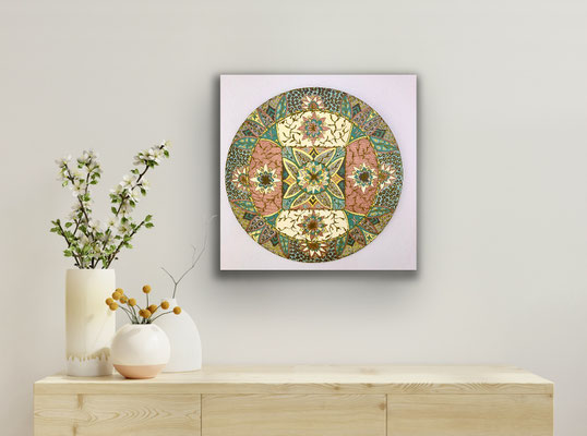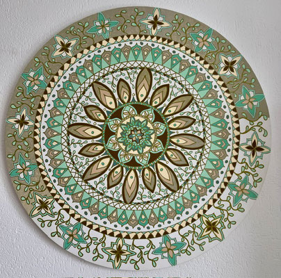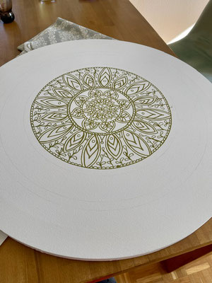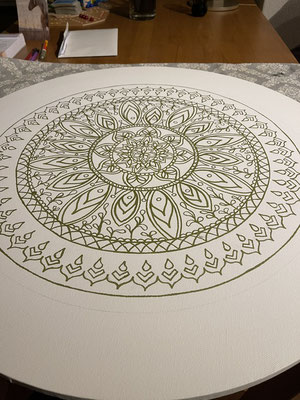 Ein Mandala 16x16 cm aus meinem Malbuch male ich gross auf Leinwand 80x80 cm für eine Kundin