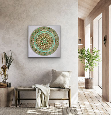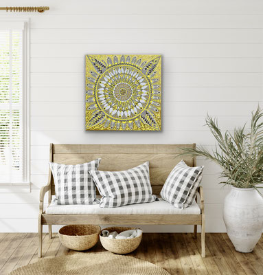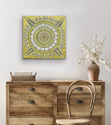 Eine neue Serie meiner Mandalas entstand mit liebevoll gesammelten Naturmaterialien, kombiniert mit Floristikmaterialien, aufgeklebt auf Leinwand. Ich vergesse mich beim anordnen der verschiedenen Gegenstände und geniesse das absolute im Jetzt sein beim aufkleben.