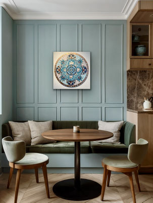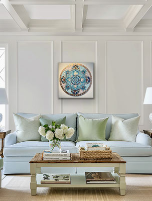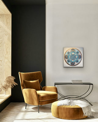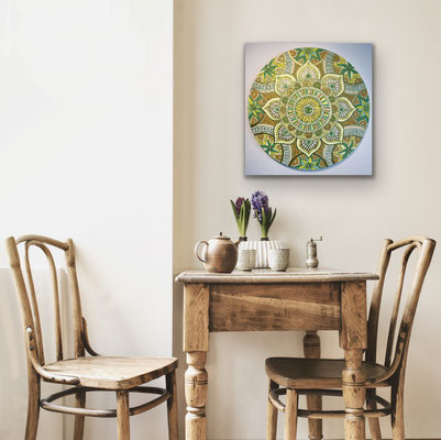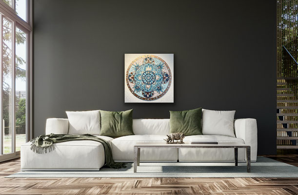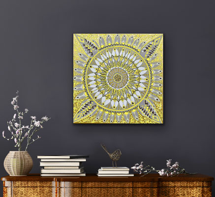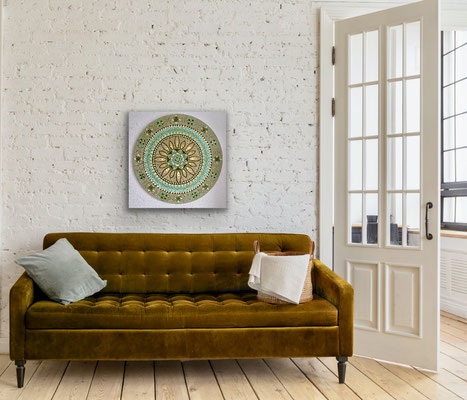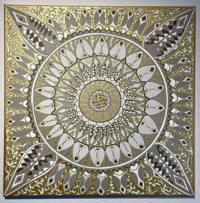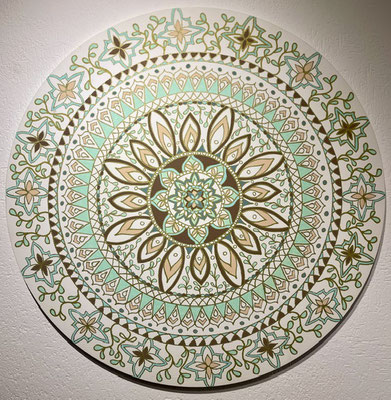 Meine Mandalas haben sich im Laufe der Jahre verändert, sie sind freier geworden und aus der Struktur des klassischen, zentrierten Mandalas ausgebrochen. Auch habe ich metallige Farben schätzen gelernt, die einen zusätzlichen Glanz und Zauber einfliessen lassen.